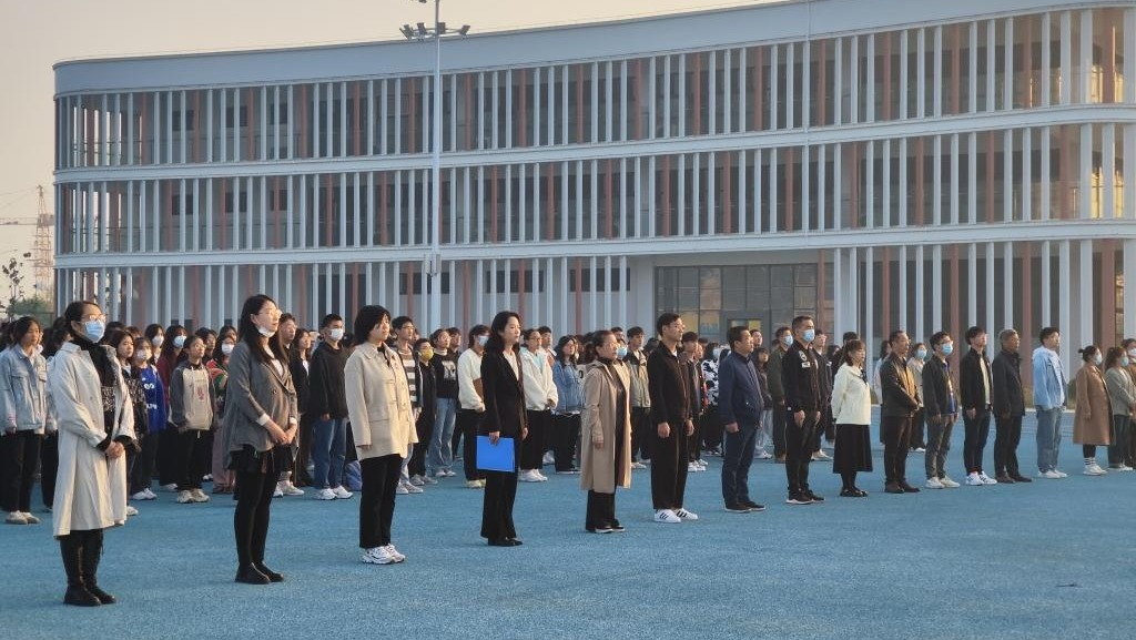 为庆祝中国共产党第二十次全国代表大会胜利闭幕,推动党的二十大精神进校园进课堂进头脑,激发青年学生的爱国之情。太阳集团tyc33455全体教师于2022年10月31日在学校操场参加了经济管理与建筑工程学院的升国旗仪式活动,并由太阳集团tyc33455教师代表在国旗下为学生们开展了题为“踔厉奋发 勇毅前行”国旗下的思政课主题教育活动。活动由书记助理叶赵强主持,吴玲院长、两院教师、辅导员以及2022级经济管理与建筑工程学院学生参加,活动共分三个部分有序进行。
