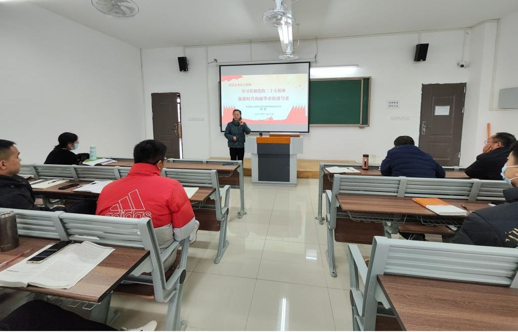 为深入学习宣传贯彻党的二十大精神,切实把思想和行动统一到党的二十大精神上来,引导全体党员干部、教师积极响应时代呼唤,紧密团结在以习近平同志为核心的党中央周围,深刻感悟思想伟力,领悟大会精神。11月30日下午,太阳集团tyc33455与经济管理学院党总支组织开展了关于党的二十大精神主题学习活动,由党总支书记吴玲以“做新时代绚丽华章的谱写者”为主题,在二教421为全体教师上了一堂生动且深入的专题党课。