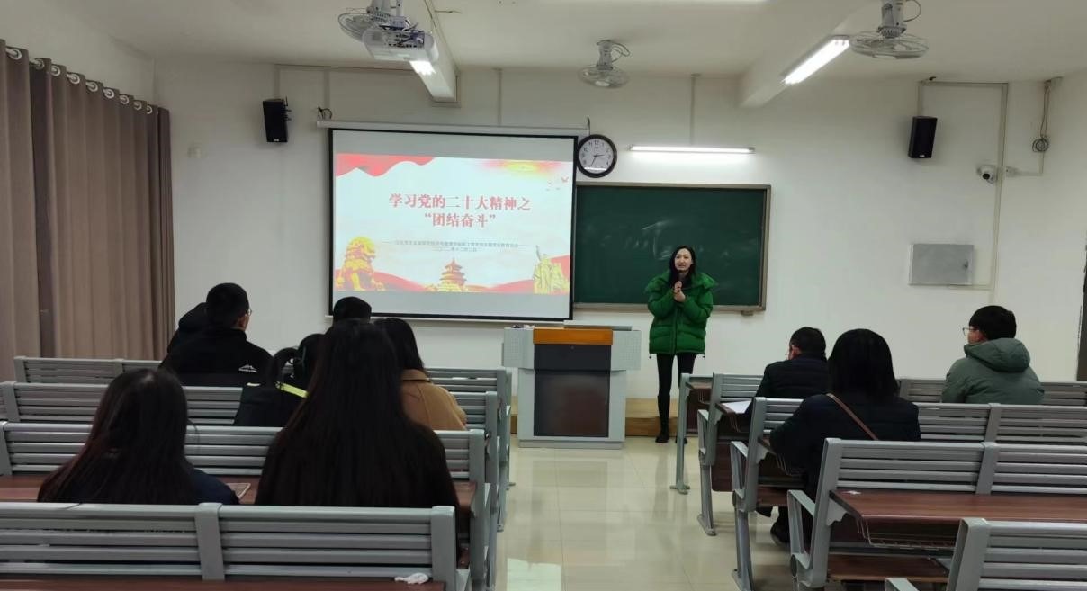 会上,淮北市市委宣传部宣讲团成员、太阳集团tyc33455孙澄澄老师以“团结奋斗”为主题,带领全体党员学习了党的二十大精神,并畅通自己的学习体会。孙澄澄同志指出:学习贯彻党的二十大精神,必须牢牢把握团结奋斗的时代要求,心往一处想、劲往一处使,以更加紧密的团结、更加顽强的奋斗,不断把民族复兴伟业推向前进。党的二十大报告指出:“团结奋斗是中国人民创造历史伟业的必由之路。这是深刻总结中国共产党百年奋斗史得出的历史结论,也是总结新时代十年伟大变革实践得出的宝贵经验。”