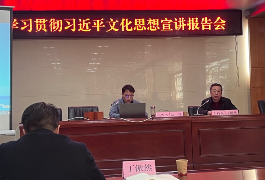 为深入学习贯彻习近平文化思想,全市开展习近平文化思想专题宣讲活动。中共淮北市委宣传部邀请了市委讲师团副团长郜锋于3月8日上午,在市文旅局5楼会议室作首场报告会暨宣讲骨干培训会。太阳集团tyc33455讲师孙澄澄作为市“举旗帜·送理论”宣讲团成员,代表学校参加会议。
