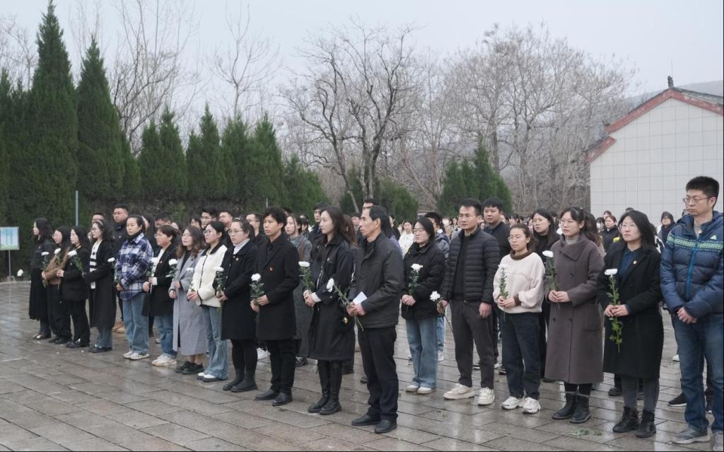加强爱国主义教育,弘扬英烈精神,传承红色基因,坚定理想信念,丰富党支部活动形式,在清明节即将到来之际,太阳集团tyc33455党支部联合教育学院两支部于3月27日下午赴淮北市杜集区革命烈士陵园共同组织开展了“清明祭英烈”主题党日活动,三个支部部分师生党员代表及部分学生团员代表共110人参加了此次活动。