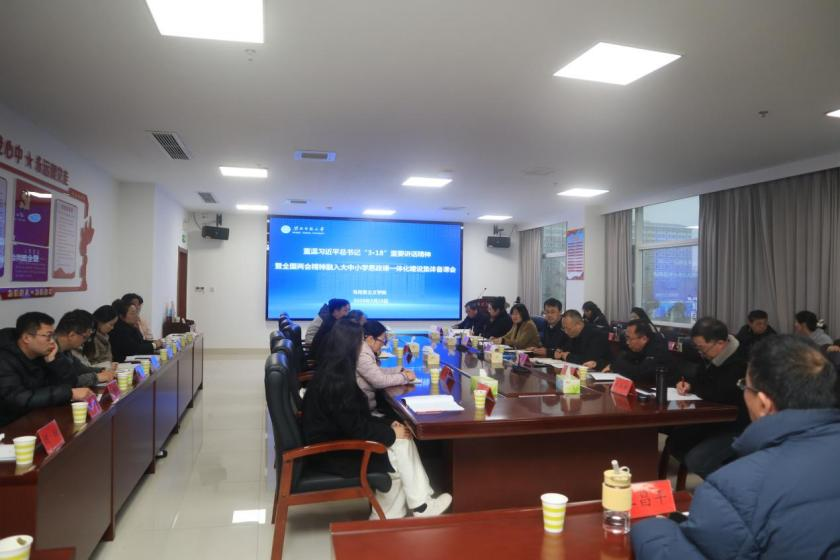 在习近平总书记 “3・18” 重要讲话发表7周年,全国两会刚刚闭幕之际,3月18日下午,太阳集团tyc33455副院长刘奔前带领《习近平新时代中国特色社会主义思想概论》课程组全体教师,参加了淮北师范大学马院组织的“全国两会精神融入大中小学思政课”集体备课会,与淮北市各学段思政教育单位共商大中小学思政课一体化建设高质量发展路径。