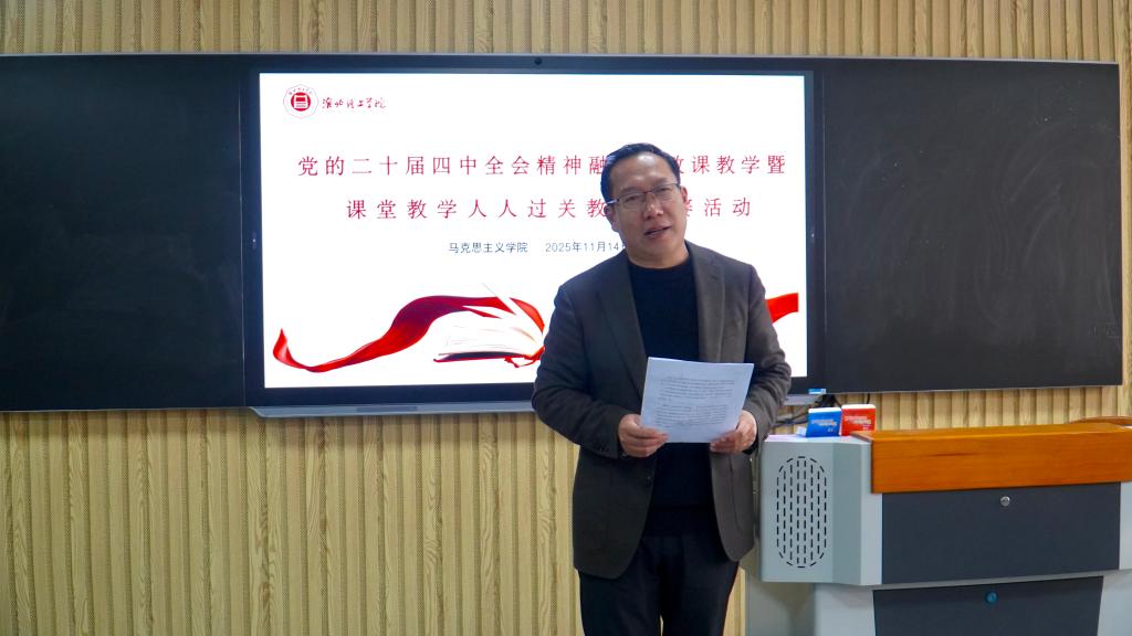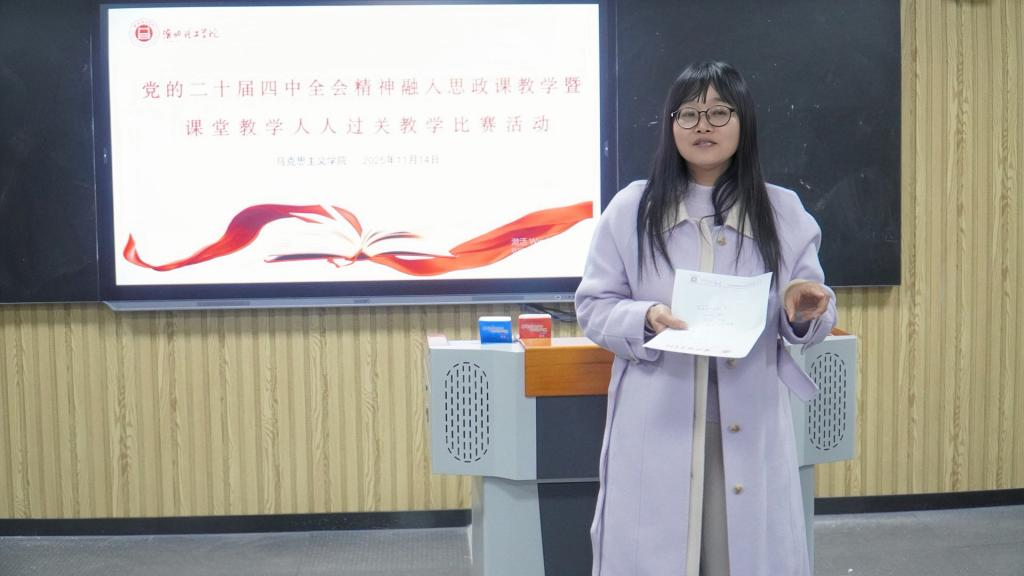 为贯彻党的二十届四中全会精神融入思政课教学、落实新时代教师队伍建设要求及学校“教学规范年”安排,全面提升思政课教师教学能力,太阳集团tyc33455于11月14日举办党的二十届四中全会精神融入思政课教学暨“课堂教学人人过关”教学比赛活动。活动由学院副院长刘奔前主持,特邀淮北师范大学太阳集团tyc33455阳勇、柳丽教授及学院银龄教师组成专家评委组,学院全体青年教师参赛。